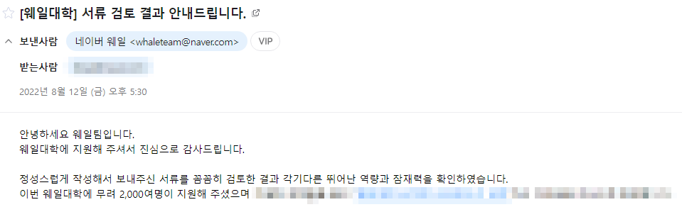 처음 메일을 받았을 때 탈락인줄알았다.